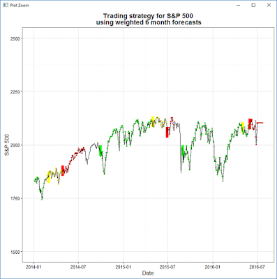 Overall, the U.S. stock market has been behaving fairly close to the models’ expectations. In January the model had projected a 7.3% market gain in te first half of 2016 and the actual market gain was exactly the same 7.3%. In June the one-month trading model turned negative — ahead of the brief Brexit market tumble.