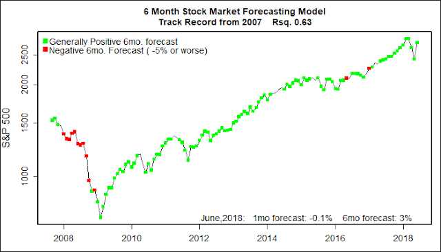 One Month Stock Market Forecast June, 2018: -0.1% ( below average)