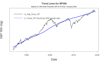 These shifts away from dividends and expansion of stock buy backs have boosted stock prices, but they have little direct effect on GDP or interest rates. So, my existing trend line is oblivious to them.