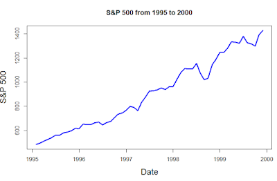 I got burnt badly during the DotCom Bubble. During the 1990’s the graph below shows how I saw the stock market — one great big ascending curve of market expansion as the U.S. economy shot up, powered largely by computer technology. The great upward trend was so obvious! I was a computer jock, and that time was exhilarating!. This time was different!