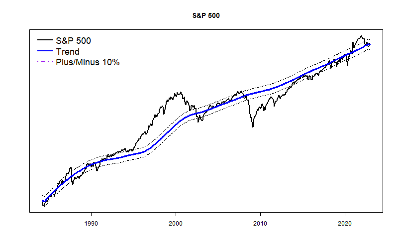 One bit of good news is that it does not appear that the stock market requires a major contraction. My long-term trend line for the S&P 500 says that the market had been in a small bubble over the past couple of years, but the tough times of 2022 brought the market back to near the long term trend. In the Dot-Com era, prices were ridiculously above the long term trend and sadly years of major downturn and over-correction were required. This time, the market situation is much more like 1987 or 2007 — in those situations the stock market was near trend and other sectors — principally real estate — required major correction.