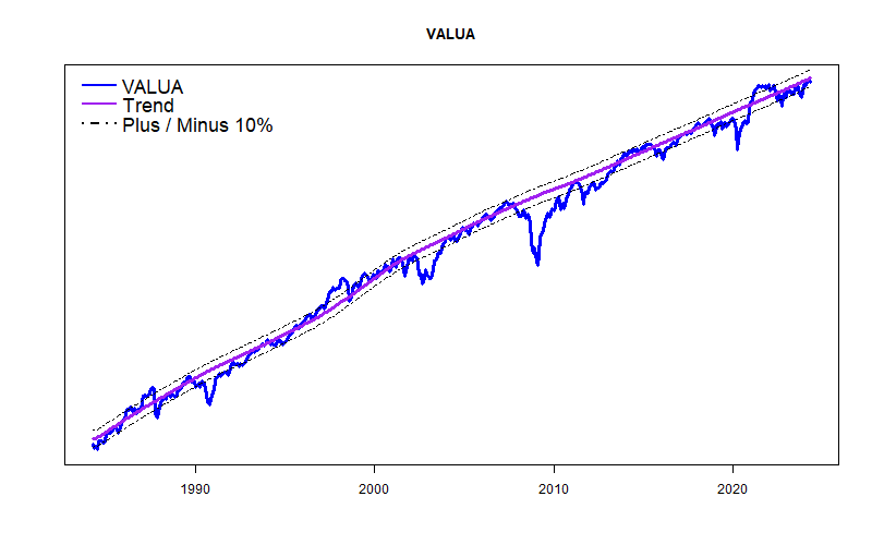 Otherwise, nothing is seriously wrong with the stock market. The S&P 500 is bouncing along its normal boundary, busily deciding if it wants to begin a new and wonderful “AI Bubble”. (My hunch is that it will.) The more staid VALUE LINE Arithmetic Average is right at its long term trend line.