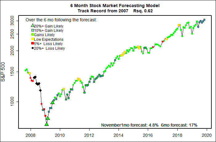 It was probably a mistake, but a while ago I started posting about what I am doing with my own money. My intent has not been to advise others, but just to be honest in indicating how strongly I believe in the econometric models. Now I am just logging the fact that I do not believe the rosy forecasts that are currently coming from the models.